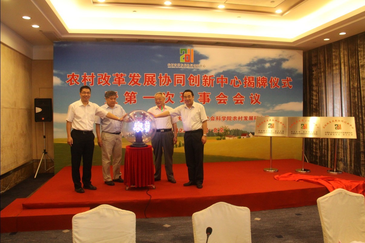 2013年7月22日上午,由华中师范大学、浙江大学、中国社会科学院农村发展研究所共同组建的“农村改革发展协同创新中心”揭牌仪式暨第一次理事会会议在京举办。农业部、教育部、民政部、国家林业局、国务院扶贫办、国家信访局等部门的领导出席了会议。新华社、人民日报、光明日报、中国社会科学报、中国教育报、南方日报、农民日报等多家媒体进行了报道。